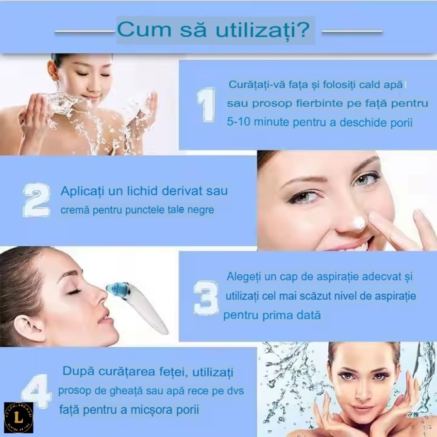 - Curatare Profunda: Utilizeaza tehnologia de aspirare vacuum pentru a indeparta eficient punctele negre, impuritatile si excesul de sebum din pori.