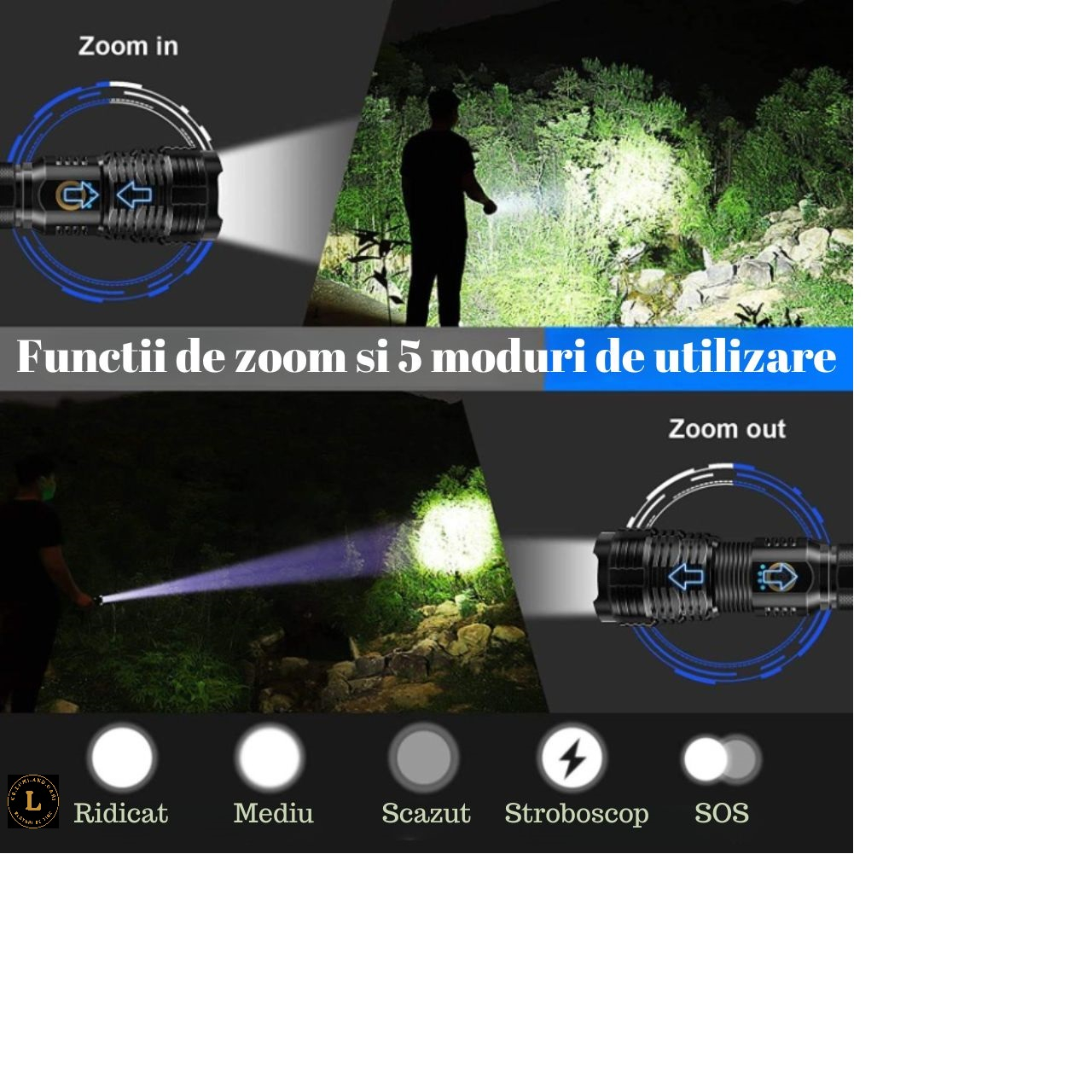 - 5 moduri de functionare: Alege din cele 5 moduri versatile de iluminare: putere maxima, medie, scazuta, mod stroboscopic si SOS pentru situatii de urgenta. Flexibilitatea de ajustare a luminii iti permite sa te adaptezi oricarei situatii.